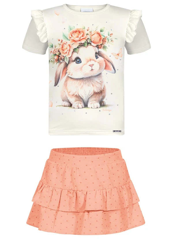 Alakazoo - Conjunto com Shorts Saia e Blusa Laranja