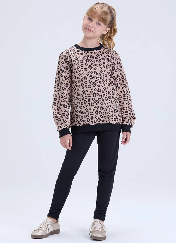 Vida Costeira - Conjunto Feminino de Moletom Oncinha Preto
