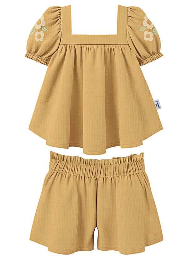Malwee Kids - Conjunto Floral em Malha Texturizada Amarelo