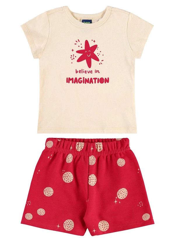 Composição: BLUSA: 100% algodão, SHORT: 50% algodão 50% poliéster