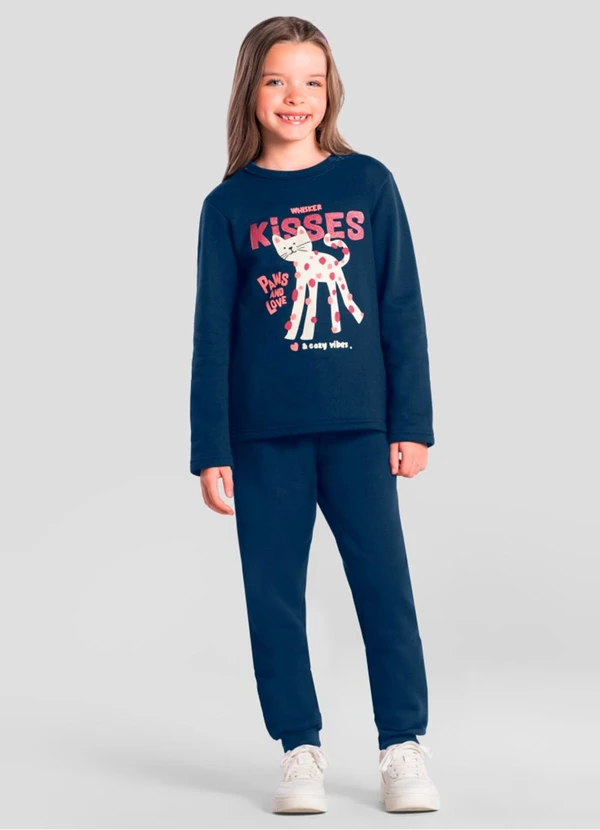 Brandili - Conjunto Infantil Menina de Gatinho Azul