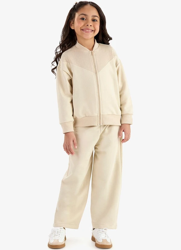 Rovi Kids - Conjunto Jaqueta com Wide Leg Moletom Bege