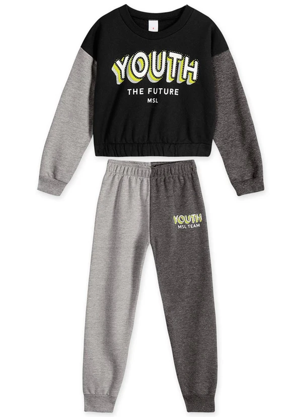 Marisol - Conjunto Longo Moletom Infantil Feminino Preto