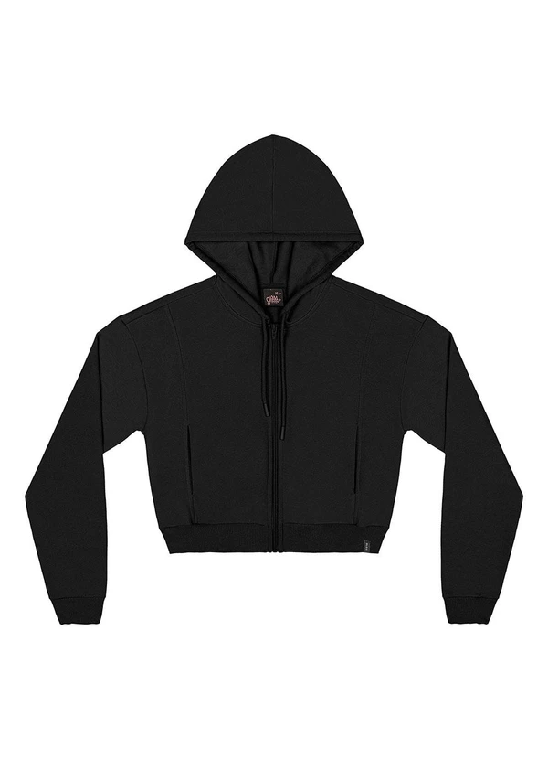 Gloss - Jaqueta Cropped Juvenil em Moletom Preto