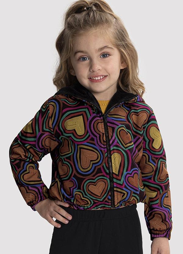 Alakazoo - Jaqueta Infantil Menina em Politel com Capuz Pelo Preto