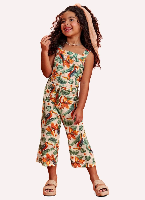 Nanai - Macação Infantil Menina Tropical Bege