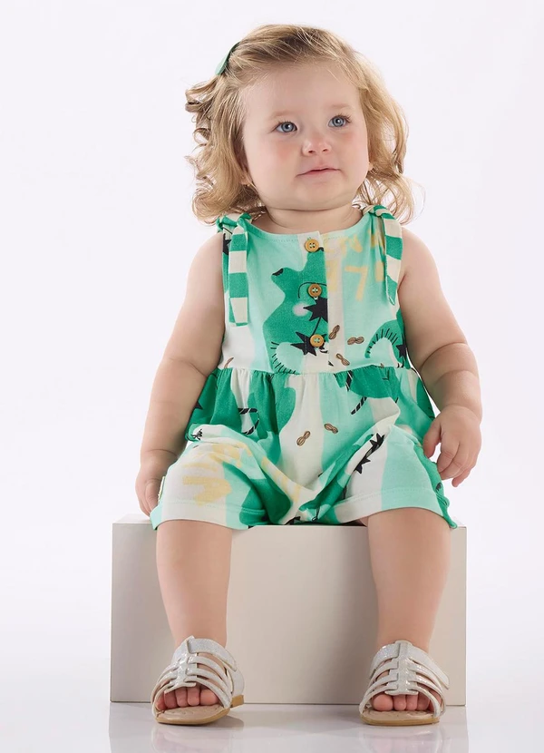 Três e Já - Macaquinho Bebê Menina em Algodão Três e Já Branco