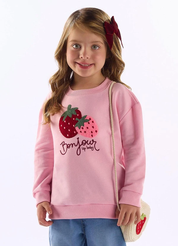 5. Up Baby - Blusão Moletom Bordado Morango Rosa