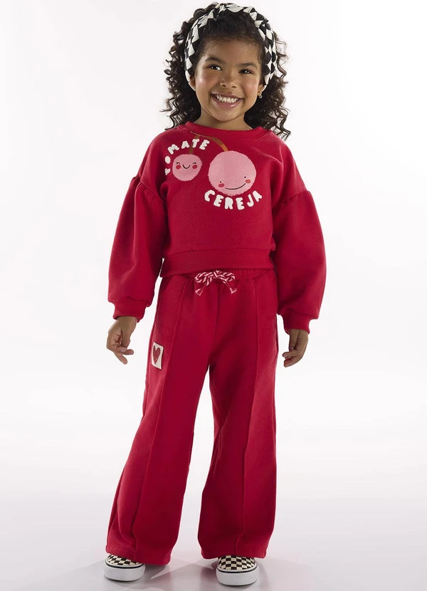 Três e Já - Conjunto com Blusão e Calça Vermelho