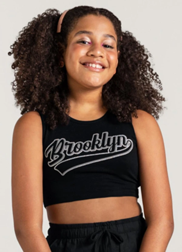 Young Class - Top em Cotton Infantil Menina Preto
