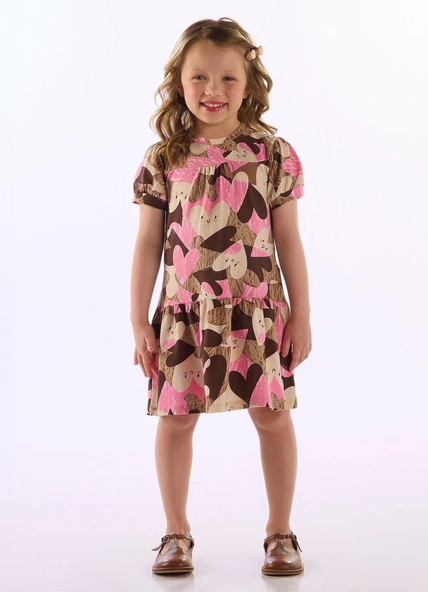 Up Baby - Vestido Cotton Manga Bufante Marrom