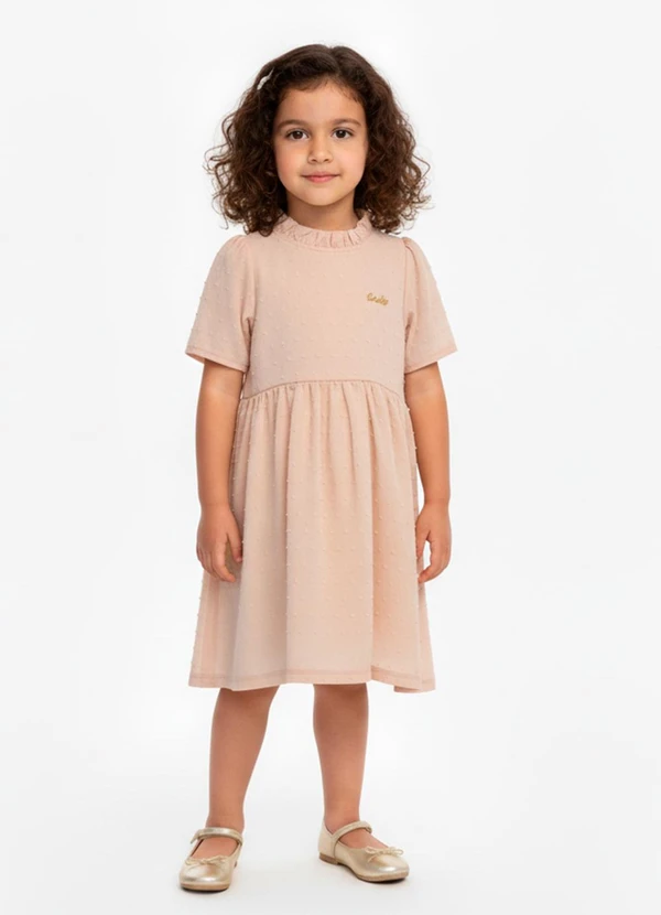 Amada - Vestido Gola Alta Franzida Bege