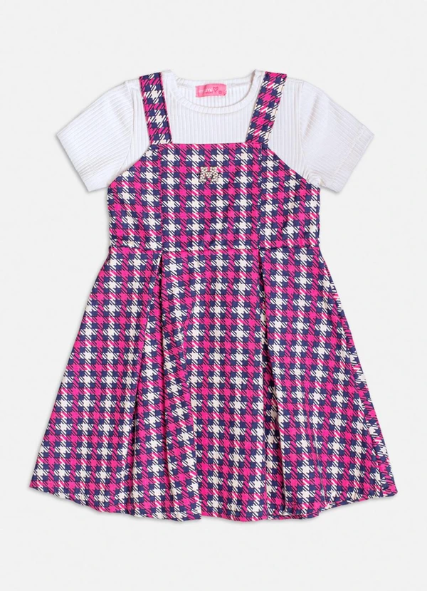 Momi - Vestido Manga Curta de Pied Poule Rosa