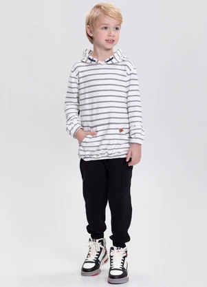 Conjunto com Calça Lisa e Blusão Listrado Cinza