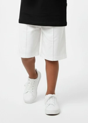 Short com Nervura em Sarja Branco
