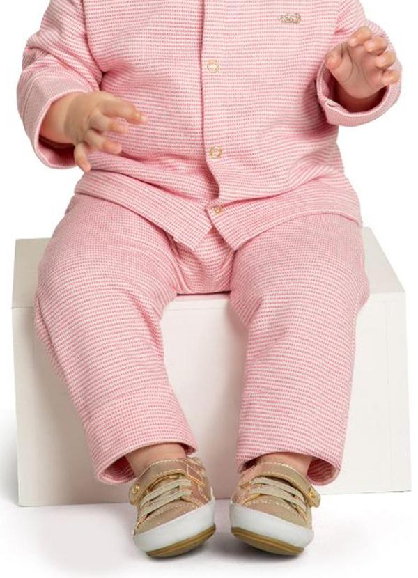 Marlan - Calça Bebê em Moletom Quadriculado Unissex Rosa