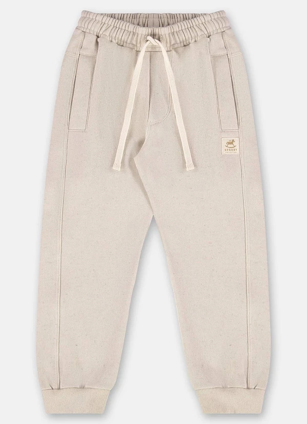 Up Baby - Calça Menino em Moletom Linho Bege