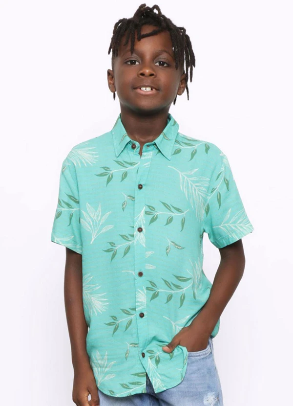 Torra - Camisa Infantil Viscose Estampa Floral Verde