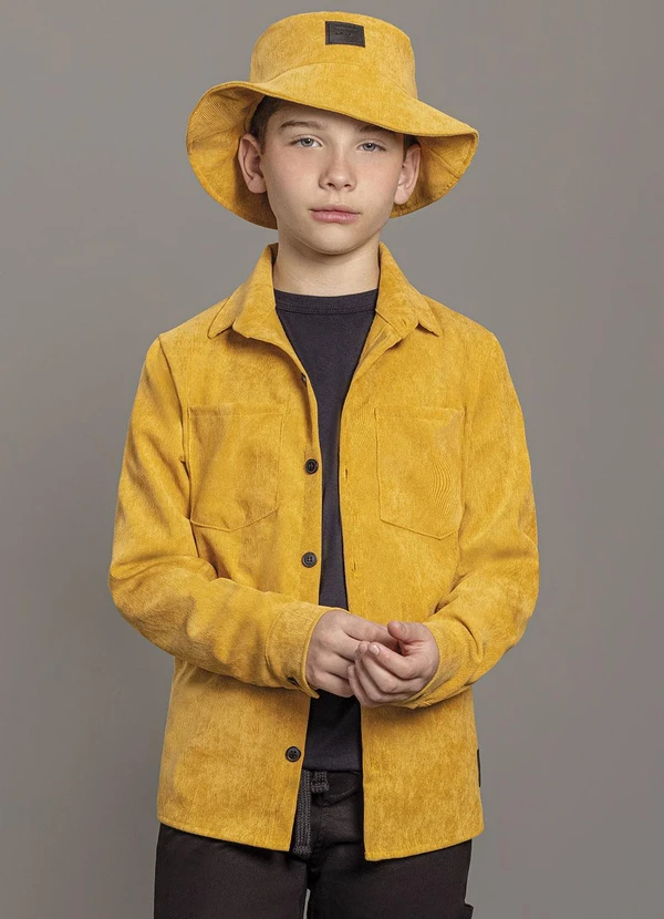 Ioluig - Camisa Menino Manga Longa Veludo Cotelê Amarelo