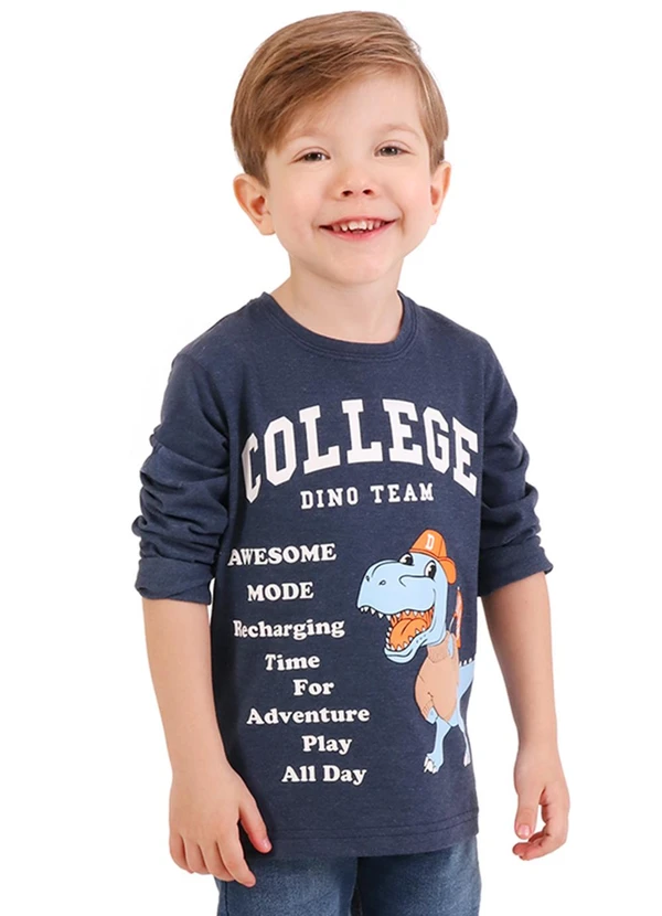 Tink Bink - Camiseta em Meia Malha Maga Longa Azul