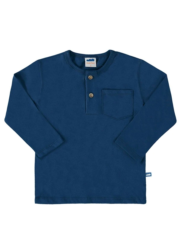 Marlan - Camiseta Manga Longa Meia Malha Bolso Azul