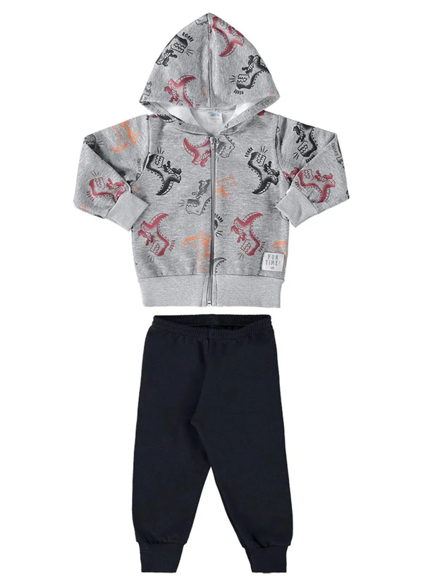 Marlan - Conjunto Bebê Jaqueta e Calça Dino Baby Cinza