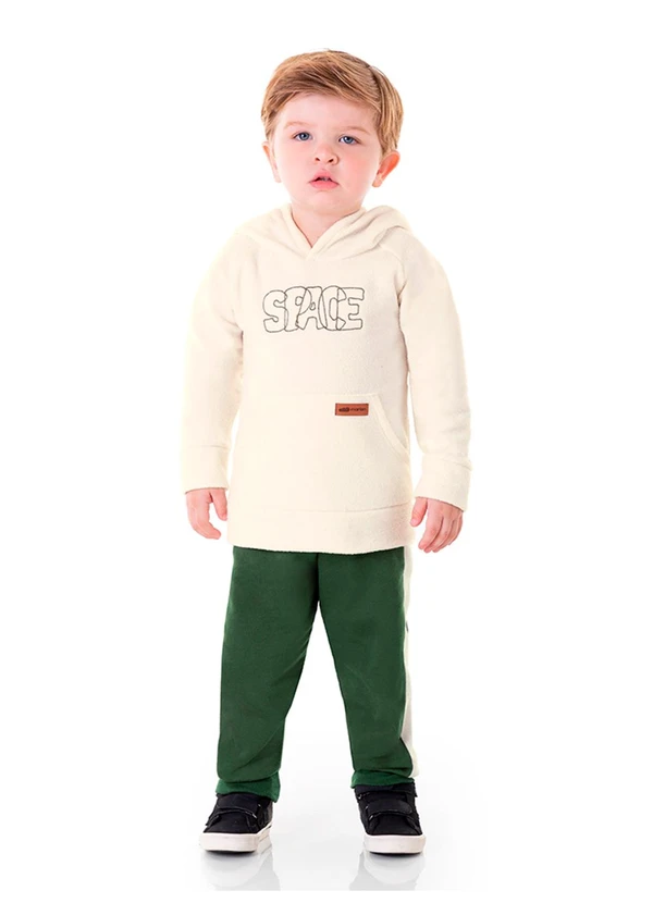 Marlan - Conjunto Blusão Boucle e Calça Moletom Bege