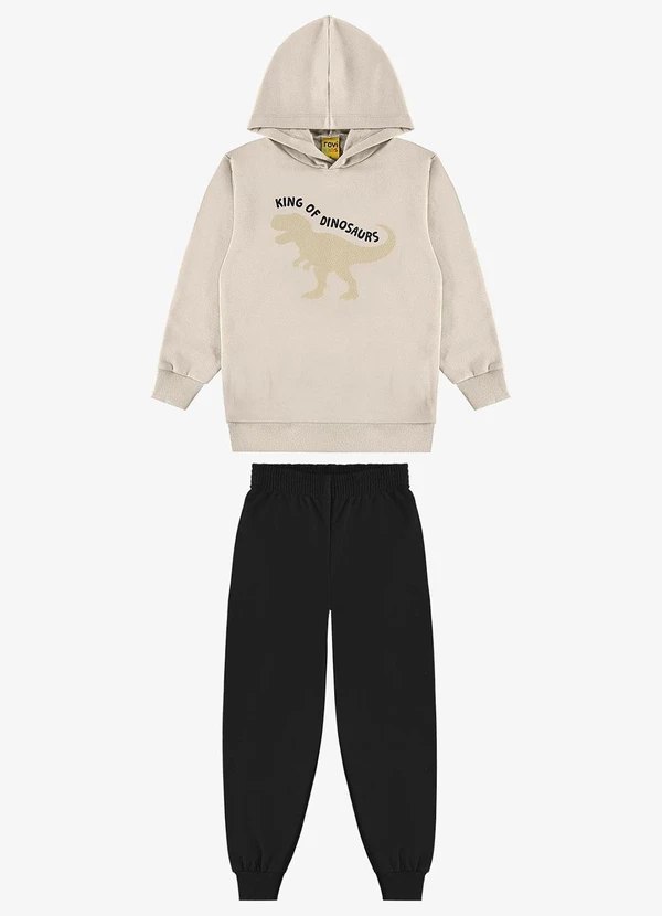 Rovi Kids - Conjunto Blusão com Capuz Calça Moletom Bege