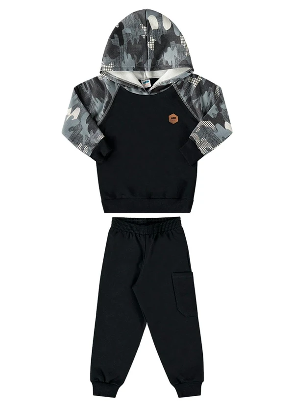 Marlan - Conjunto Blusão e Calça Moletom Camuflado Preto