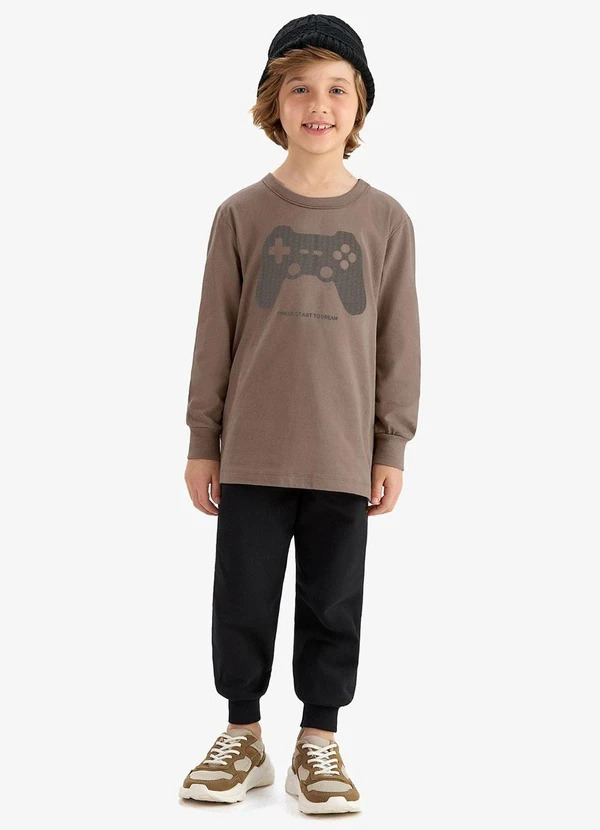 Rovi Kids - Conjunto Camiseta com Calça Meia Malha Marrom