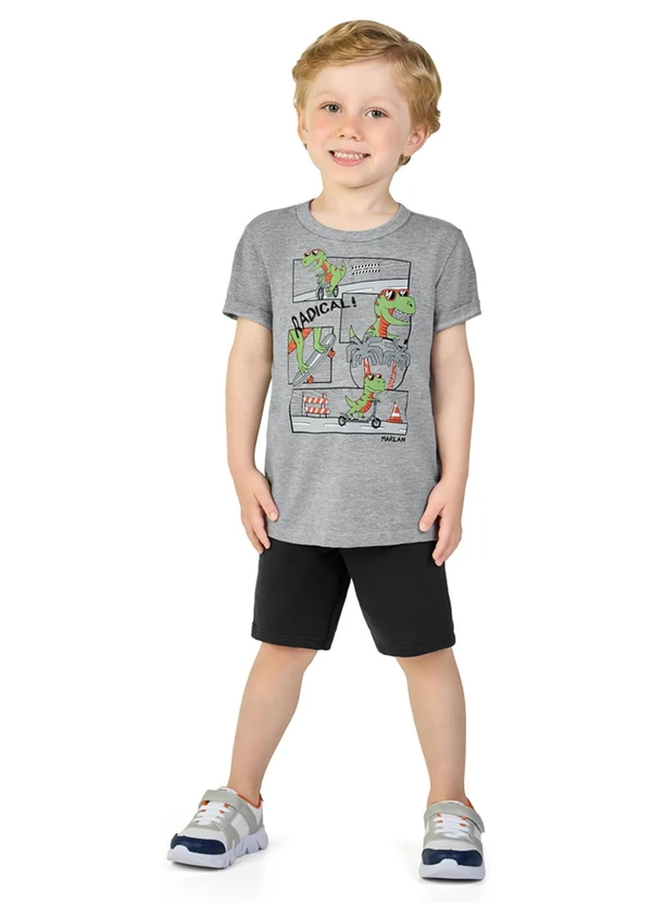 Marlan - Conjunto Camiseta e Bermuda em Moletinho Cinza