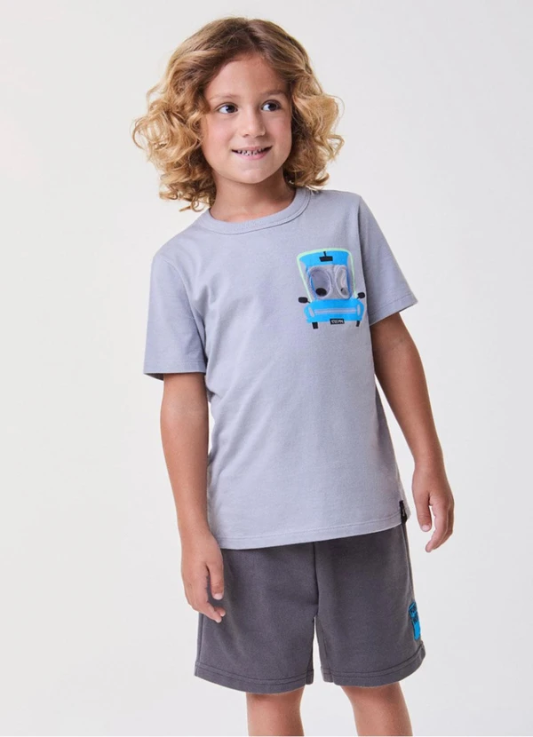 Bimbi - Conjunto Cinza de Carro com Olhinhos Cinza