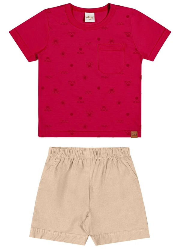 Elian - Conjunto Curto Infantil Menino Sol Vermelho