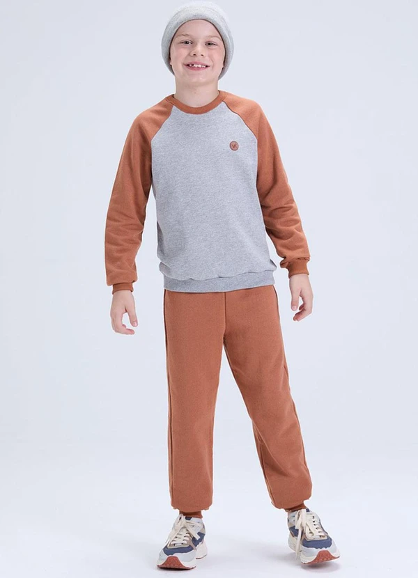 Vida Costeira - Conjunto de Moletom Raglan com Aplique Caramelo