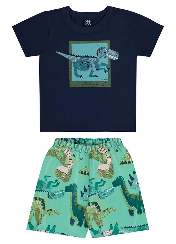 Bee Loop - Conjunto Dino Camiseta Bermuda Bee Loop Azul