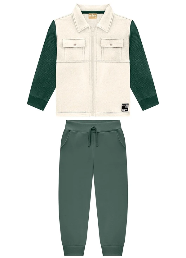 Composição: Jaqueta corpo 99%alg 1%polie, mangas 50%alg 50%polie, calça 100%alg