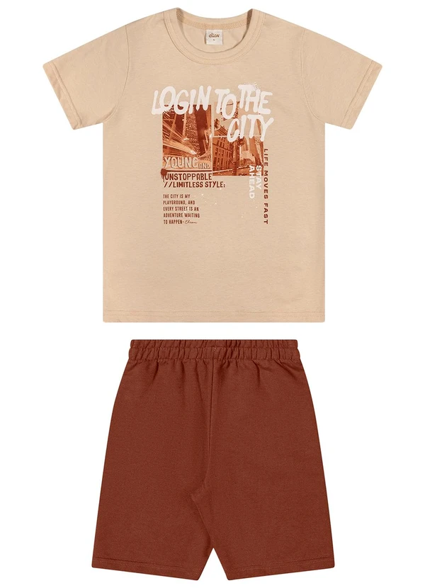 Elian - Conjunto Infantil Menino Estampa Urbana Bege