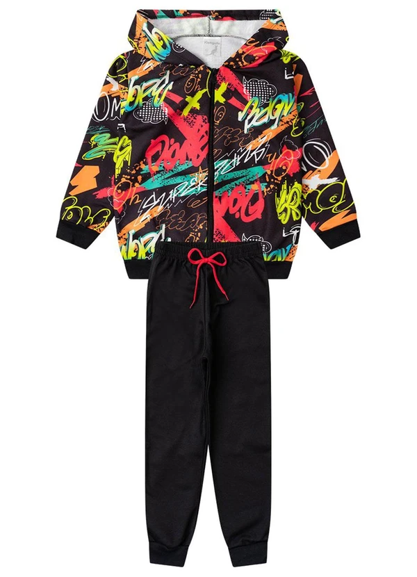 Rosa Azul - Conjunto Infantil Menino Inverno Estampa Preto