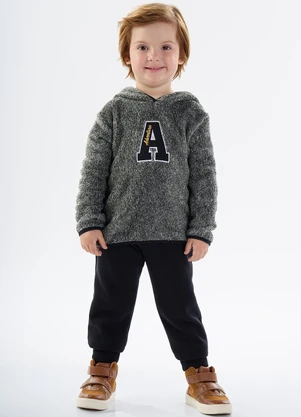 Conjunto Bebe Moletom e Malha Relevo Cinza