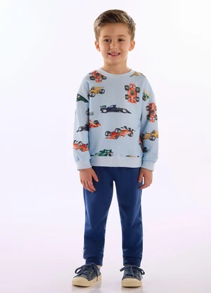 Conjunto Carros Blusão Calça Azul