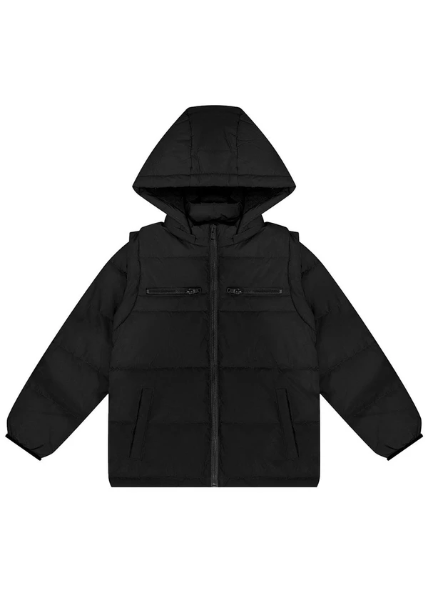 Alakazoo - Jaqueta Infantil Menino com Capuz e Zíper Preto