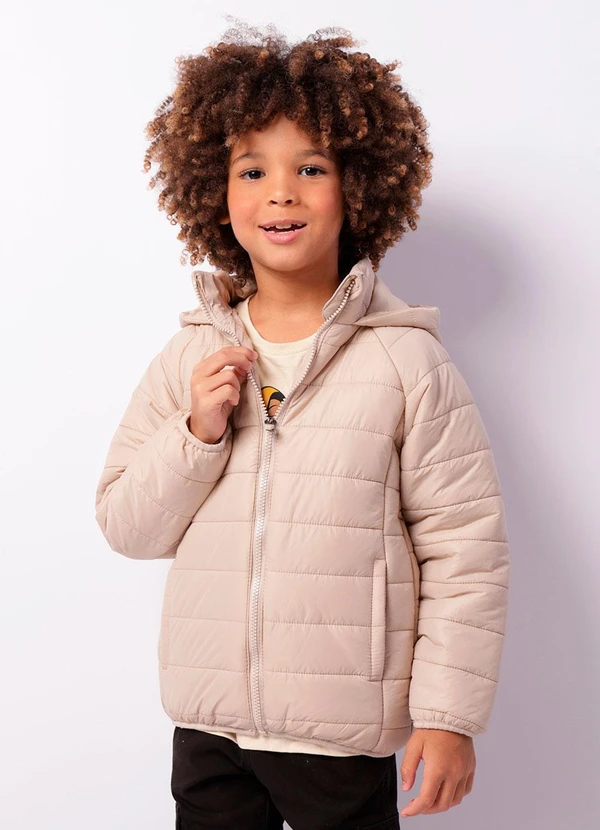 Torra - Jaqueta Infantil Puffer com Capuz e Bolsos Bege