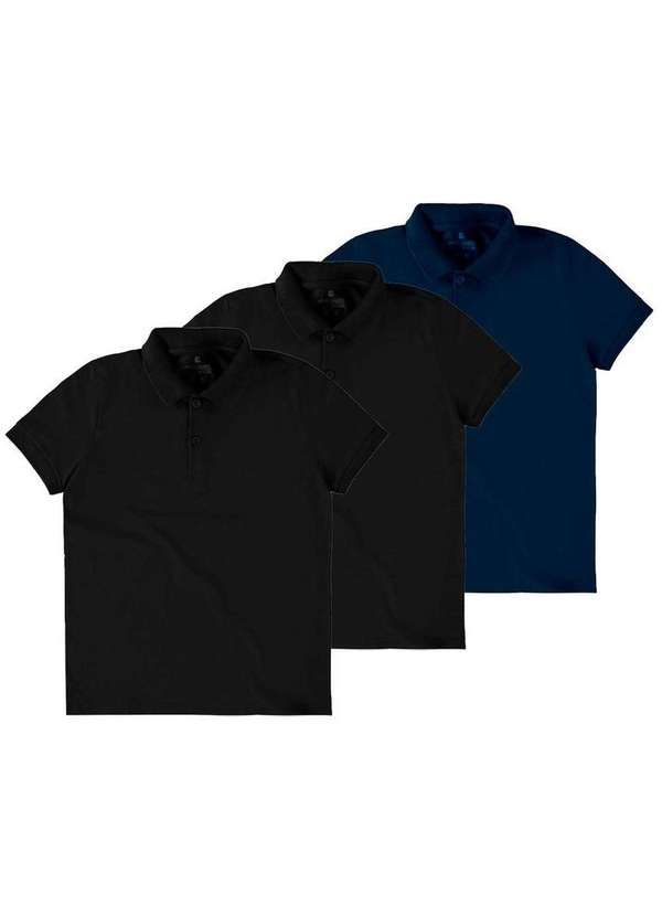 Malwee - Kit com 3 Camisetas Polo Infantil Menino Malwee 1000111119 Preto-Marinho