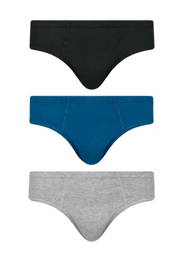 Selene - Kit com 3 Cuecas Juvenil Slip Selene 11990-001 998-Preto-Royal-Cinza-Mescla