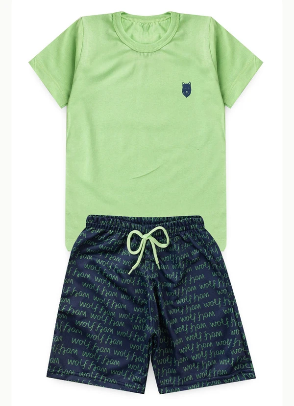 Rosa Azul - Conjunto Infantil Verão Wolf Kangulu Verde Lima