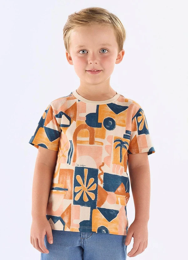 Up Baby - Camiseta Algodão Estampa Abstrata Laranja