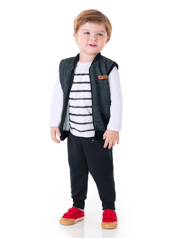 Marlan - Conjunto 3 Peças Colete, Camiseta e Calça Preto - variação: Preto