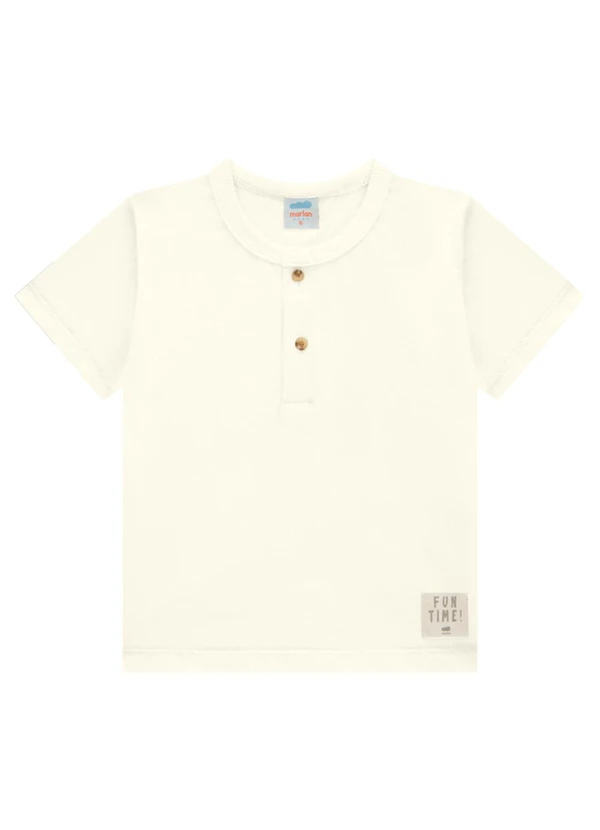 Marlan - Conjunto Bebê Camiseta e Bermuda Moletinho Bege