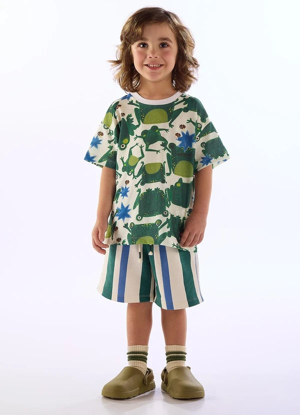 Composição: BERMUDA: 50% algodão 50% poliéster, CAMISETA: 80% algodão 20% viscose