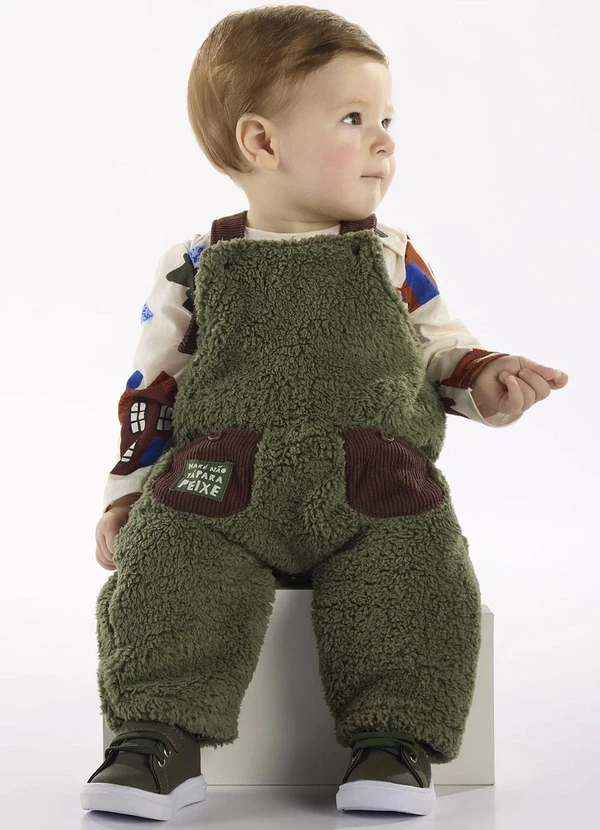 Três e Já - Conjunto com Body e Jardineira Verde
